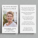 Simple elegant prayer card for a loved one's memorial and funeral service. The front features "In Loving Memory Of" and "forever in our hearts" in a mix of typography and script. Personalise with their photo, name and birth and death dates. The reverse side features a long inspirational passage ("Fill Not Your Hearts With Pain") and a shorter message, or customise with your own messages or biblical verses. Perfect for sharing comfort and memories with family and friends at funerals or memorials.