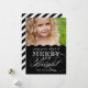 SIMPLE MERRY AND BRIGHT PHOTO FLAT CARD | BLACK. ELKE CLARKE© ELEGANT WHITE TEXT ON A BLACK BACKGROUND WITH BLACK AND WHITE DIAGONAL STRIPES PATTERN ON THE BACK. MAY YOUR DAYS BE MERRY AND BRIGHT
