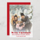 This photo card is perfect for showing off your vertical or portrait orientated photo. Features your custom greeting in festive red lettering with your custom text below against a soft white overlay.