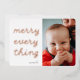 A simple, fun "merry everything" script coupled with your merry photo to include everyone on your mailing list, and whatever holiday they celebrate. Whether Hanukkah, Christmas, Kwaznza... the whole season of celebration. A greeting that also extends through the New Year and beyond.
