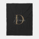 Simple Midnight Black Mossy Gold Script Monogram Fleece Blanket