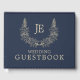 Simple Midnight Blue gold ornaments Wedding Guest Book