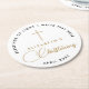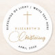 Simple Minimal Black White Gold Cross Christening Round Paper Coaster