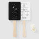 Flip the hand fan to reveal dedicated sections for the ceremony details, wedding party introductions, and a heartfelt thank you message to your guests. The crisp black and white backdrop ensures a clean and sophisticated aesthetic throughout.