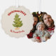 Simple and minimal personalised keepsake Christmas paper ornament with photo on the back. Created from a hand drawn watercolor Christmas tree in a kitschy style. Original art by Leslie Larson.