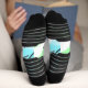 I love these Mona Lisa Christmas Socks! They are soft and very comfortable. The print looks great, on all sides including the most stretched area around my calf.