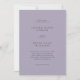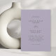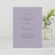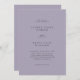 This simple and tasteful wedding invitation has an elegant aesthetic with a clean minimal design. Shown here in lavender purple with dark charcoal grey text, this design is available in other popular colorways. It's a wonderful choice for weddings in any season of the year at any type of venue. The simplicity of the design is accentuated by crisp typography and an absence of ornate details. A classic choice that highlights the bride and groom's names in larger type along with a calligraphy element joining the couples names with flourishes and swashes presents an overall sense of simplicity and sophistication.