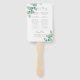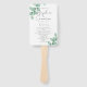 Simple, modern, minimal with trendy script signature font wedding program printed on a fan with a watercolor Eucalyptus greenery border, order of the ceremony, bridal party names, and thank you message on the back. The white background colour can be changed to match your wedding colour scheme.