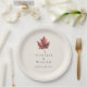 Simple Minimal Fall Leaf Cream Wedding Paper Plate