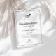 A simple minimal graduation ceremony invitation card with black and white colours. The text details and image can be personalised.