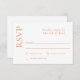 This simple and tasteful wedding response card perfect for a citrus grove wedding theme has a modern aesthetic with an elegant and minimal design. A classic font choice presents an overall sense of simplicity and sophistication with citrus orange text on a clean white background. Matching products are available to make planning your wedding a breeze. Personalise this card with your required response date.