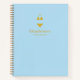 This minimalist pale blue travel notebook has personalization in gold tone and a cute bikini illustration on the front.