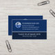 Card features a blue shades layered design that is demarcated by a thin white demarcation line.