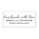 This simple minimalist ´´handmade´´ stamp includes a catchy header ´´handmade with love´´ in handwritten script. Below is your custom name in modern elegant typography, followed by your social media handle (or other text) in lower-case font. Create your own handmade rubber stamp to promote your small business!