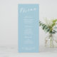A light blue baptism menu card featuring soft pastel blue tones and elegant script lettering. This minimalist design adds a clean, modern touch to your boy’s baptism or christening reception while beautifully displaying your meal selections.
