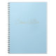 Simple and modern custom notebook with name. Light blue cover with gold tone modern typography. Great for meeting notes, shopping list and goal making. If you need a teachers gift this would be perfect! Choose from spiral colour and type of pages inside.