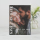 This design features a QR code simple minimalist modern save the date card, with a two photo picture website online layout, and a scan scannable web address URL, for wedding details more information, a simple wedding engagement engaged couple, a contemporary simplistic style design, a clean lined line simplistic modern, a minimal photo save the date, a wedding save the date cards, a double sided save the date card