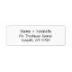 Modern wedding return address labels featuring a simple design with three lines of text in a casual black handwriting font over a white background.