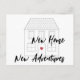 Casual typography script new home new adventures moving announcement postcard featuring a sketched house and red heart. Personalise it with your text and new address on the backside!