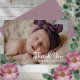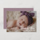 Simply sweet photo girl baby shower "Thank You" featuring a single large photo on front with your baby's name and your unique message and signatures on back. Features a dusky lavender background on back. Template placeholder photo courtesy Pexels. Design by Holiday Hearts Designs.