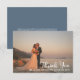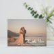 Minimalist photo wedding "Thank You" featuring a single large photo on front with names and wedding date and your unique message and signatures on back. Features a dusky blue background on back. Template placeholder photo courtesy Unsplash. Design by Holiday Hearts Designs.