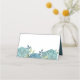 This template design features a wedding watercolor elegant floral place card with blue hydrangea table number flower, botanical foliage reception seating, simple minimalist succulent garden, guest name and table number, minimal dinner guest simple elegant, calligraphy folded banquet seating, elegant watercolor floral succulent, perfect for spring summer fall bouquet, elegant reception seating