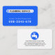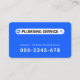 A blue cover features a "search engine" motif at the top of the card where you can place your plumbing business name. Near the base is a slogan caption option which you can change alongside the contact details.