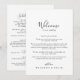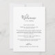 This simple minimalist wedding welcome letter is perfect for a modern wedding. The simple and elegant design features classic and fancy script typography in black and white.