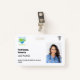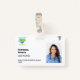Simple and minimalist custom hospital employee badge in white with the corporate logo, photo, name, and staff role or title. Edit the background colour by clicking on the option to customise the design. Duble-sided, both sides will have the same design unless you want to change it. Available with a lanyard, metal clip or retractable cord. Please get in touch with us if you have any questions or need a personalised design.