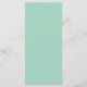 A simple menu that has a modern colour, mint green, and uses elegant calligraphic script for title and subtitles. All text is white.