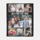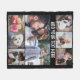 Simple Modern 8 Photo Collage Custom Text Black Fleece Blanket