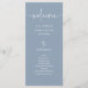 These elegant, dusty blue and white wedding welcome programs are simple and minimalist yet very stylish due to the modern handwritten script and clean layout. Easily add your order of ceremony and the names of your wedding party.