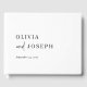 This elegant, black and white wedding guest book is simple and minimalist yet very stylish due to the modern handwritten script and clean layout. Add your names to the front, back, and spine of the guest book.