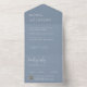 These elegant, dusty blue and white wedding all-in-one invitations are simple and minimalist yet very stylish due to the modern handwritten script and clean layout. A detachable rsvp card is included, which serves as both a combo traditional rsvp your guest can return, as well as a QR code for those who prefer to rsvp online instead.