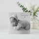 Simple Modern Baby Photo Birth Announcement. Announce the arrival of your little one with simplistic flair. The front of the card features a 3/4 circle with leaves and the date of your baby's birth finishing the circle on a full baby photo in black and white (that you will replace with your own baby's photo). The back features all the baby information with leaves bracketing baby's name and cute little icons showcasing the DOB, length, weight and time.