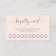 Elegant business loyalty card featuring the title with swashes in a grey handwritten script over a blush pink background. The template includes ten punches and the backside has your contact information. This simple and feminine design is great for a makeup artist, hair stylist, lashes technician, beauty / nail salon or any woman owned business.