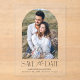 Announce your wedding in style with our Simple Modern Black Arch Photo Save the Date. This sleek design showcases your engagement photo within a chic arch-shaped frame, set against a frosted or transparent acrylic background for a contemporary and elegant look. "Save the Date" is beautifully displayed in black modern serif and script fonts, adding a timeless touch to the minimalist design. Customise this stunning save-the-date card with your names, wedding date, and location to create a personalised and unforgettable announcement. Perfect for any wedding theme, this design blends simplicity with modern sophistication.