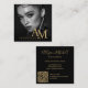 A bold, minimalist square business card designed for photographers. The front features a full-bleed black and gold portrait photo with custom initials and clean typography. The back offers all essential contact details, social handles, and a scannable QR code for easy access to your portfolio, pricing, and booking info. Designed for impact and professionalism, this modern layout helps clients remember you instantly.