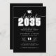 Below the year, all event details are cleanly laid out in modern white fonts, including the graduate’s name, date, time, and celebration location. The high-contrast black, white, and light gray color palette keeps the design timeless, stylish, and easy to read.
