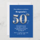 Simple Modern Blue and Silver 50th Birthday Invitation