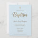 Simple Modern Blue Gold Cross Baptism Invitation
