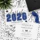 This classic yet modern horizontal graduation announcement doubles as a party invitation. The front features an oversized "Class of 2026" in bold black and white, with the year in navy blue, complemented by elegant grey script accents. Two graduation cap icons add a celebratory touch, with space below for the graduate's name and school. Colours can be customised to match school colours for a personalised look.