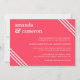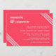 A simple and stylish wedding invitation with minimalist appeal in bright coral with white triple lined corners and white text. The bride and groom's names feature prominently on the upper left of the invitation with the details of the wedding in a modern right-justified layout. This tasteful invitation is a wonderful choice for weddings in any season of the year or any time of day. The luxurious colour scheme sets the tone for a lovely wedding celebration. You can change the colour of this invitation to match your wedding colour scheme by choosing "click to customise further" at the bottom of the text template and selecting a different background colour.
