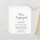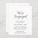 Contemporary black and white budget engagement party invitations featuring a simple and minimalist layout with "We're Engaged" in an elegant calligraphy script. A modern design that goes well with any style of engagement party.