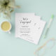 Contemporary black and white budget engagement party invitation flyer featuring a simple and minimalist layout with "We're Engaged" in an elegant calligraphy script. A modern design that goes well with any style of engagement party. PLEASE NOTE: These do not include envelopes.