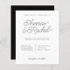 A minimalist black and white wedding invitation featuring a typographic design and simple calligraphy script font. Easily personalize by filling in with your own details. Order yours today.