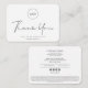 Design is composed of simple cursive typography. Add your company, business, or shop name. Add promo code at the back, expiration date, and fine print. Add you business logo, social media accounts and company website.