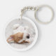 Chic, simple, modern round acrylic photo keychain template featuring custom dog photo with border and handlettered name on the front, backside with framed photo only. This stylish, easy to customise photo keychain is a perfect gift for pet lovers. © y.BEE PAPERIE