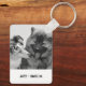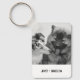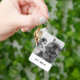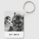 Add your own photo and text to create a unique photo gift. This metal keychain is ready to be customised with your photo and your own names or message in distressed black typewriter style lettering. The simple, modern black and white style looks great with black and white or colour photos. Show off a favourite photo of your pets, a family photo or a vacation memory.
