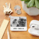 Add your own photo and text to create a unique photo gift. This metal keychain is ready to be customised with your photo and your own names or message in distressed black typewriter style lettering. The simple, modern black and white style looks great with black and white or colour photos. Show off a favourite photo of your pets, a family photo or a vacation memory.